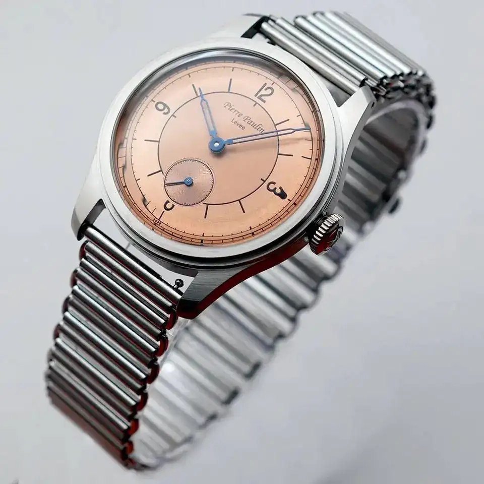 - Branding regulero. El reloj es Merkur pero aparece con la submarca Pierre Paulin que parece que suena pijo sin serlo.