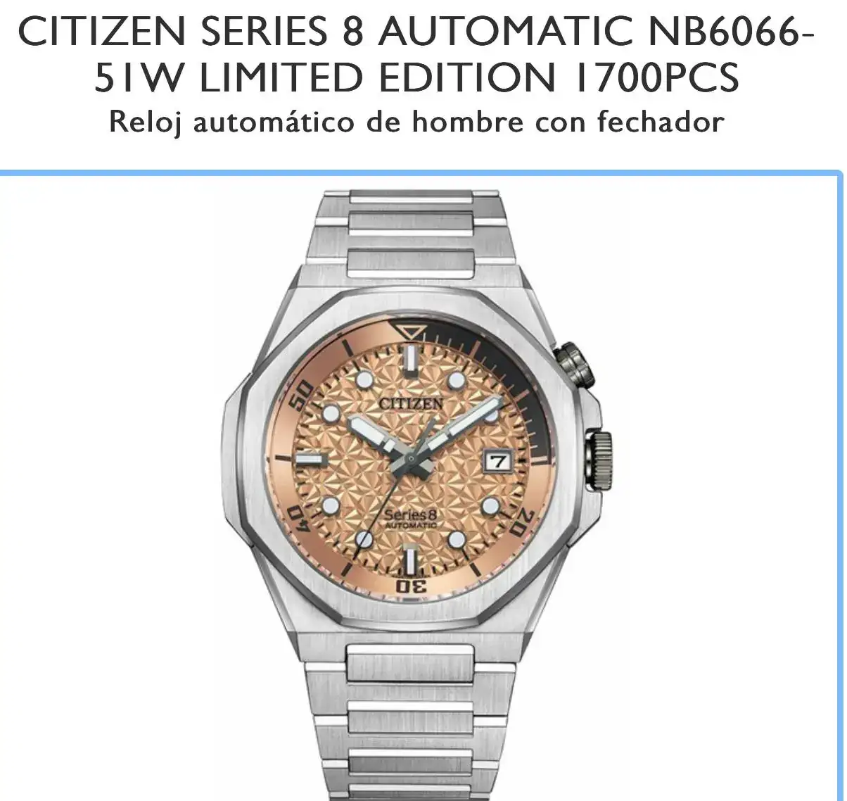 Últimamente he estado buscando modelos con diales en salmón ya que es un color que me gusta bastante pero encuentro poca variedad por debajo de los 1000€. A mi se me ocurren los siguientes: