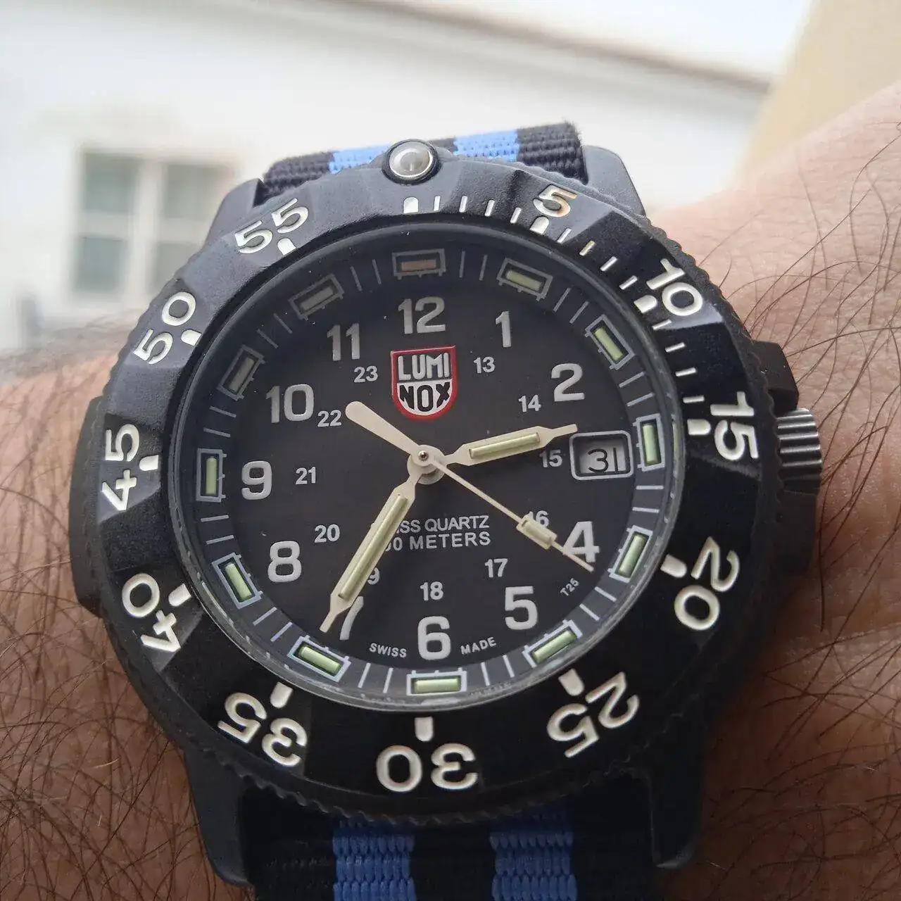 Luminox Navy Seal. Mi reloj de uso frecuente y duro en casa, campo, senderismo, playa en verano, etc etc. Le he hecho perrerías y ahí está el tío, como el primer día. Me ha dado pereza quitarle la nato que lleva para ponerle su correa, ya me disculpareis.