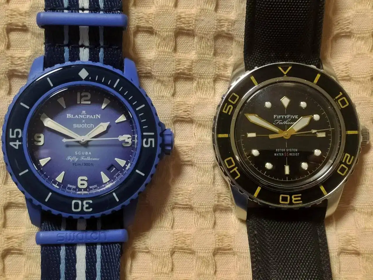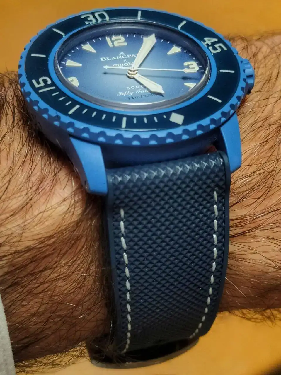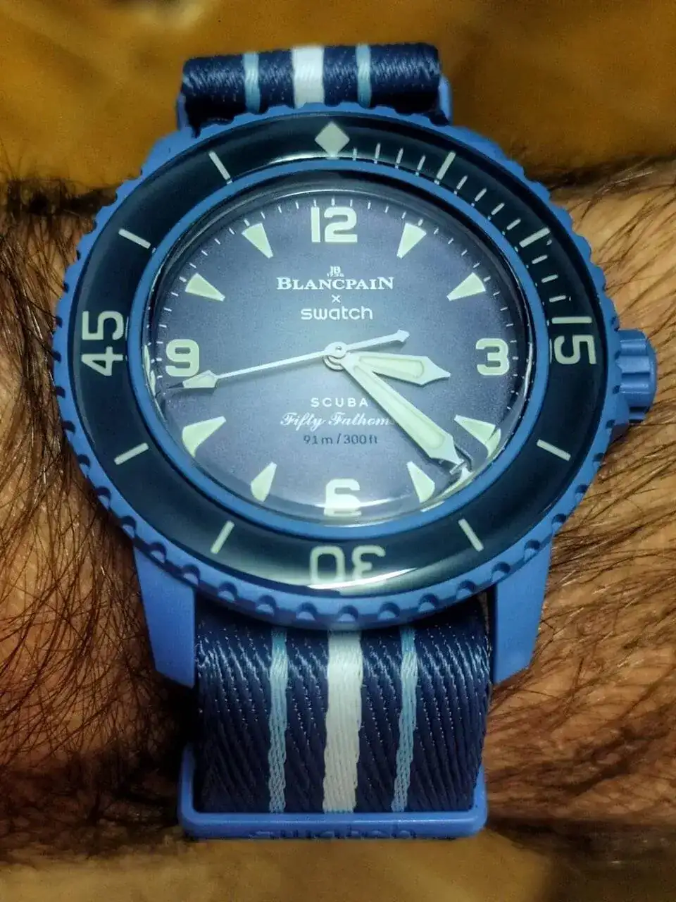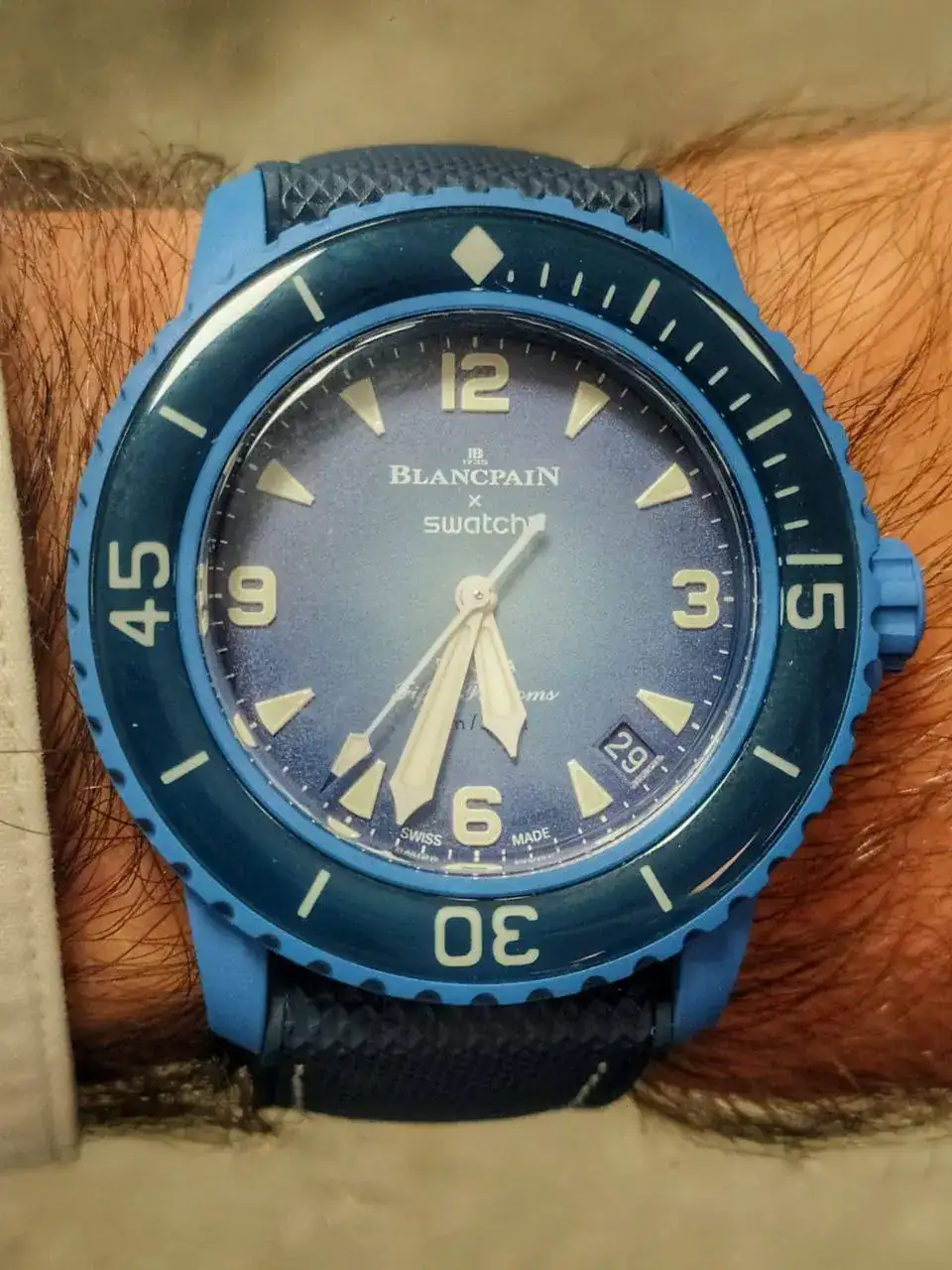 Después de tener serias dudas 🤔 (pagar 390€ por un reloj de plástico, que no puede abrirse para mantenimiento, y ni siquiera para cambiar el calibre), decidí comprar un Swatch Blancpain, que acompañase a mi MoonSwatch Mercurio.