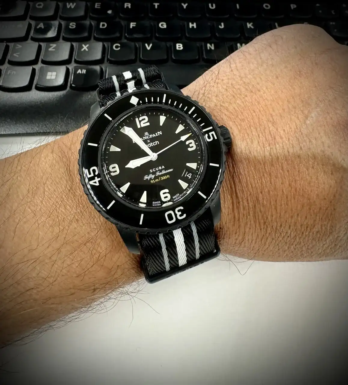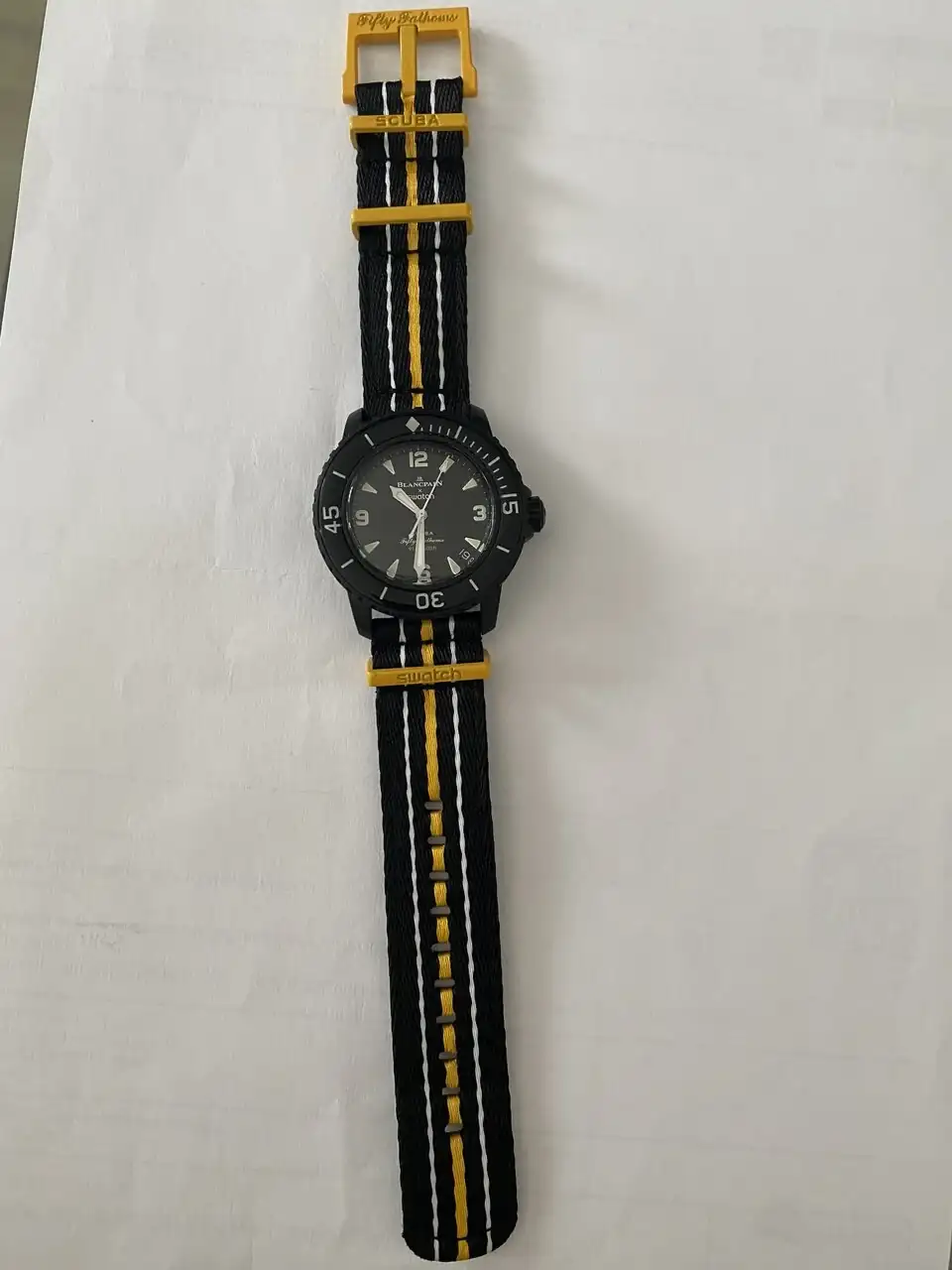 Se cambia igual que el original, las pasé canutas para ponerle la NATO al mio, sudores fríos por si lo arañaba.Después de tener serias dudas 🤔 (pagar 390€ por un reloj de plástico, que no puede abrirse para mantenimiento, y ni siquiera para cambiar el calibre), decidí comprar un Swatch Blancpain, que acompañase a mi MoonSwatch Mercurio.