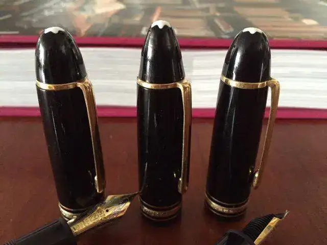 Hola amgos estaba limpiando mis plumas cuando se me ocurrió poner juntos los capuchones de mis tres 149 y descubrí que son diferentes, miren bien la fotograía no es distorsión fotográfica sino que los cumbre de la montaña es más aguzada en unas que en otras. Mi pregunta es ¿realmente existen diferencias según los años o alguna de estas tres ha sufrido una reparación artesanal de algún tipo? Una es del 2000, otra de fines de los 80 y la otra tiene alimentador de celuloide. Otra diferencia es que uno de los cuerpos de las plumas ( el de la más antigua) por ser más grueso no acepta las otros capuchones al ponerselo por atrás (es decir se la debe forzar un poco) ^sin dobles sentidos por favor^. He visto el cuadro de elementos para diferenciar las 149 por años pero ninguno menciona estas circunstancias. Como dos fueron heredadas (una de mi padre y otra de mi abuelo (no el mismo del tintero) no se el historial de reparaciones (si las hubo) teniendo en cuenta que en Lima no había representante de la marca.Una pareciera ser F, una M y otra la que yo compré B. Eso si delgadas o gruesas escriben como los dioses.