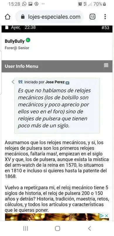 Los cuarzos cuentan con 50 años de historia y los mecanicos personales (acotó porque también alguno se ha ido a los relojes de Iglesia, y sol si me apuras) cuentan aproximadamente con 5 siglos.