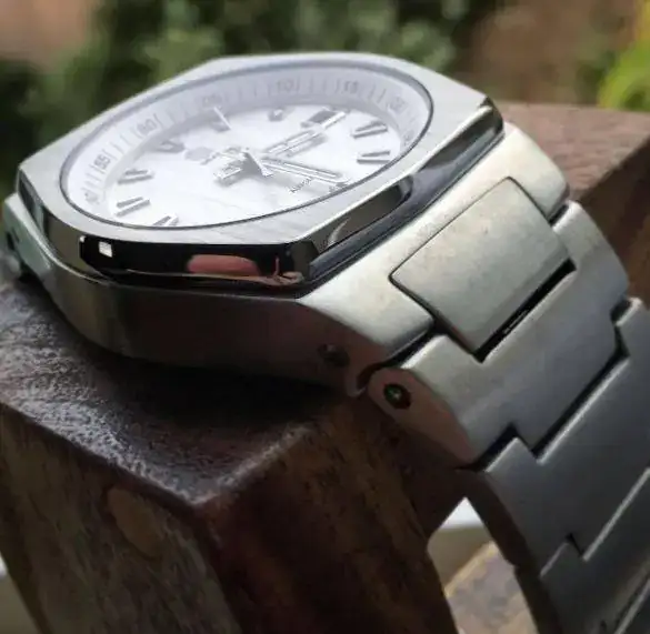Algunas características: caja de acero 316L, movimiento automático Miyota 9015 con remonte y parada y reserva de 42hrs, Cristal de zafiro con antireflejos interno y 41mm de diámetro.
