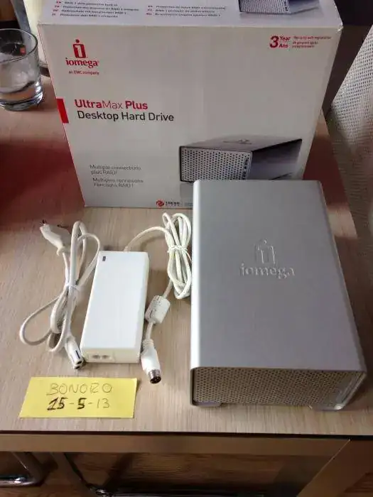 Se trata de un disco duro de doble bahía fabricado por Iomega, modelo Ultramax Plus cuadra, con discos seagate barracuda de 7200rpm, construido totalmente en aluminio y con gran calidad en la misma.