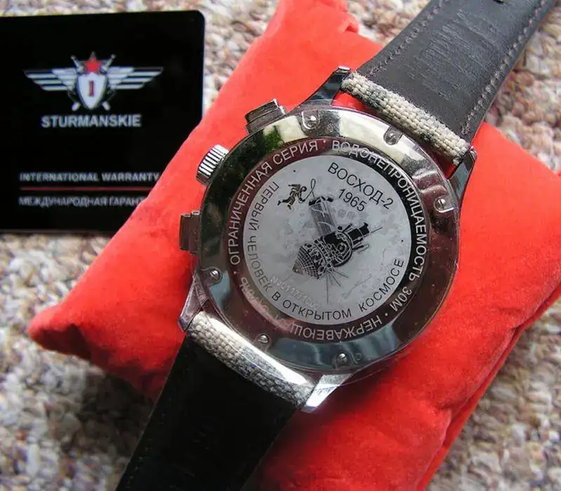 Miércoles, yo creó que esto deberia cambiar la visión del proyectoPerdón pero YA EXISTE un reloj conmemorativo de la misión Vosjod-2.Se trata del Sturmanskie Open Space.Este fue mío hasta el año pasado.En la tapa trasera lleva grabado más de lo que pretendéis poner en el dial:nave,cable y Leónov de paseo.Sería mejor buscar otro hecho para conmemorar: