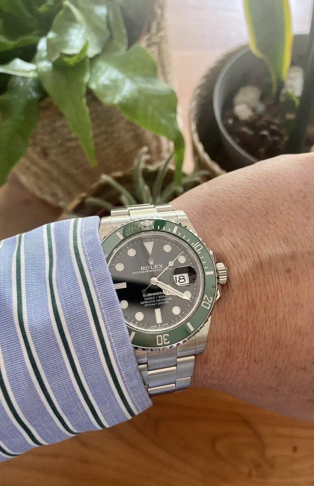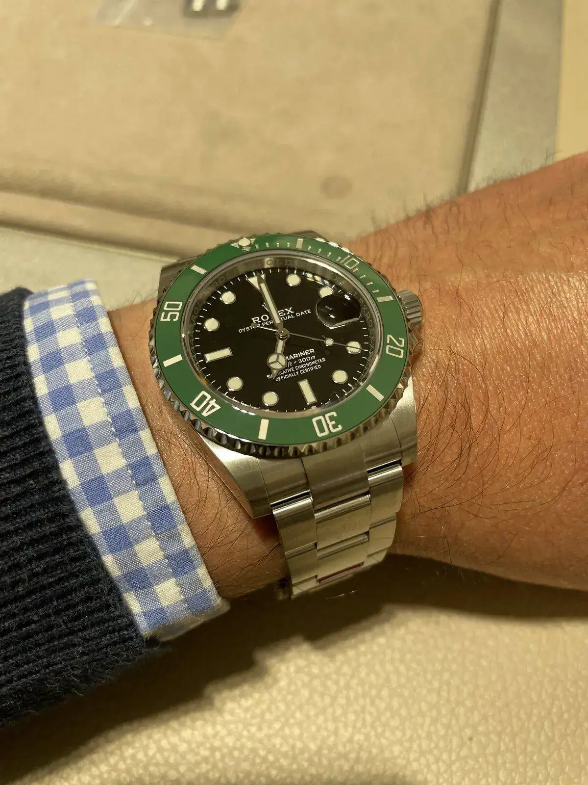El modelo que tu tienes "Kermit" me lo probé en la muñeca de un CO hace 3 meses solo para saber como me quedaría un Sub, porque entre a interesarme y me dijeron que solo tenian este en ese preciso momento y que era un modelo imposible de conseguir "Estaba en el escaparate" pero que serviria para que me hiciese una idea de como me quedaria.Este lunes recogí mi LV