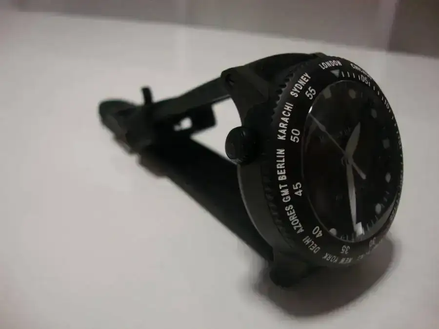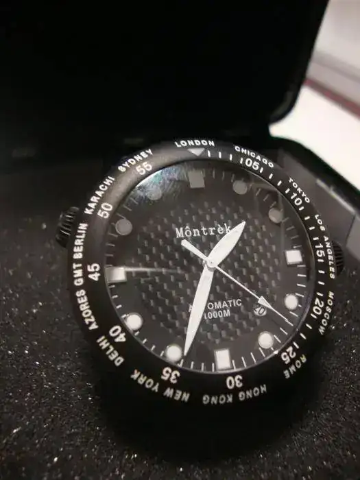 Vendo MÔNTRÈK WORLD TIME. Se trata de un diver con robustez, necesaria debido a su resistencia a la presión de agua de nada menos que 1000 m. Además cuenta con un bisel donde aparecen grabadas ciudades que representan los husos horarios.