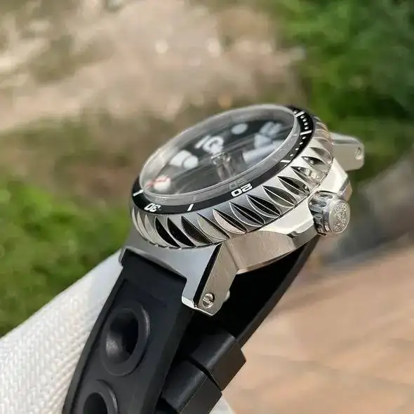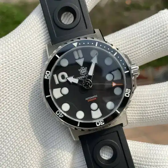 ¡Vaya pedazo de acero! El armis de lado parece la oruga de un tanque, me encanta. Seguro que se puede usar como puño americano, menudo rompe mandíbulas. Lo que dudo es que el de Steeldive aguante hasta 25 Km, pero bueno, sólo tenemos que organizar una quedada en la fosa de las Marianas, llevar un ejemplar y una cuerda de 25 Km...