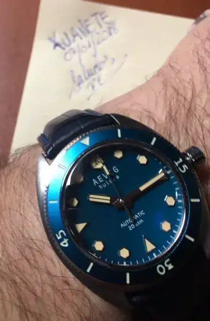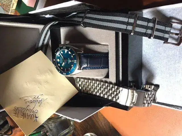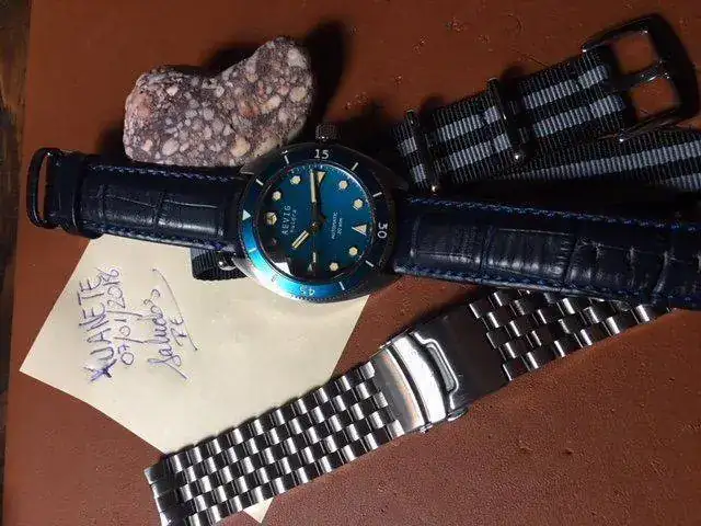 | Brazalete/ Correa: Acero mate más nato originales más Hirsch Grand Duke azul sumergible. | |
