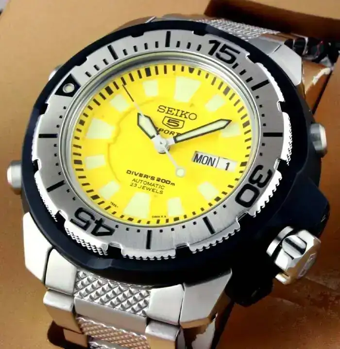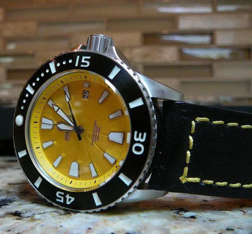 Ando loco buscando un diver amarillo, si es posible con bisel, agujas y los índices negros (aunque no es imprescindible) automático, preferiblemente con estética vintage, de entre 42 y 45mm (esto si es importante). Que no sea caro, para usar sólo en verano. No lo voy a mojar, pero que tenga estética diver es fundamental para mí.