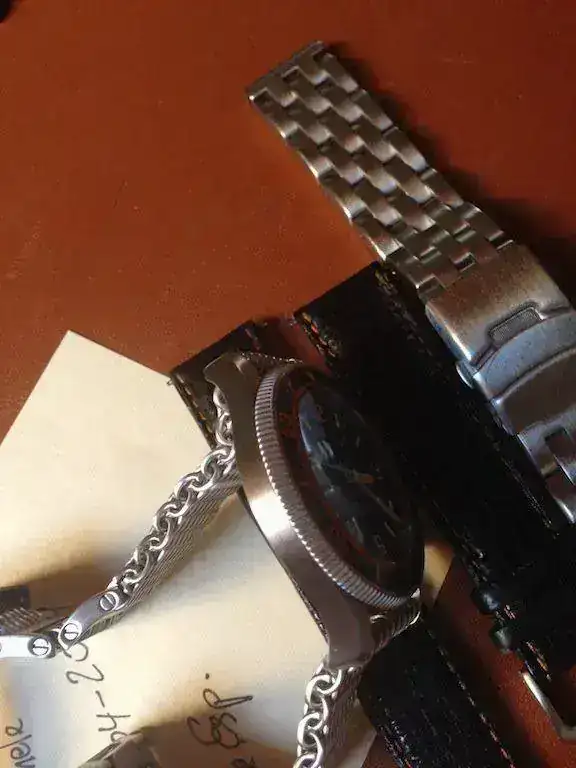 Pongo a la venta este elegante y realmente discreto de apariencia y medidas para ser un 300mts. Adquirido en febrero de 2012, como reza en sus papeles que se entregan junto al resto de súper caja 🙂D) espartana que entrega la marca. El reloj es usado y tiene algún puntito en el bisel y alguna marca del cambio de correas, pero todo ello bastante discreto. Hace poco pasó por el taller para revisión, engrase y estanqueidad, dándole un repaso también al lumen conservando los tonos de fábrica.