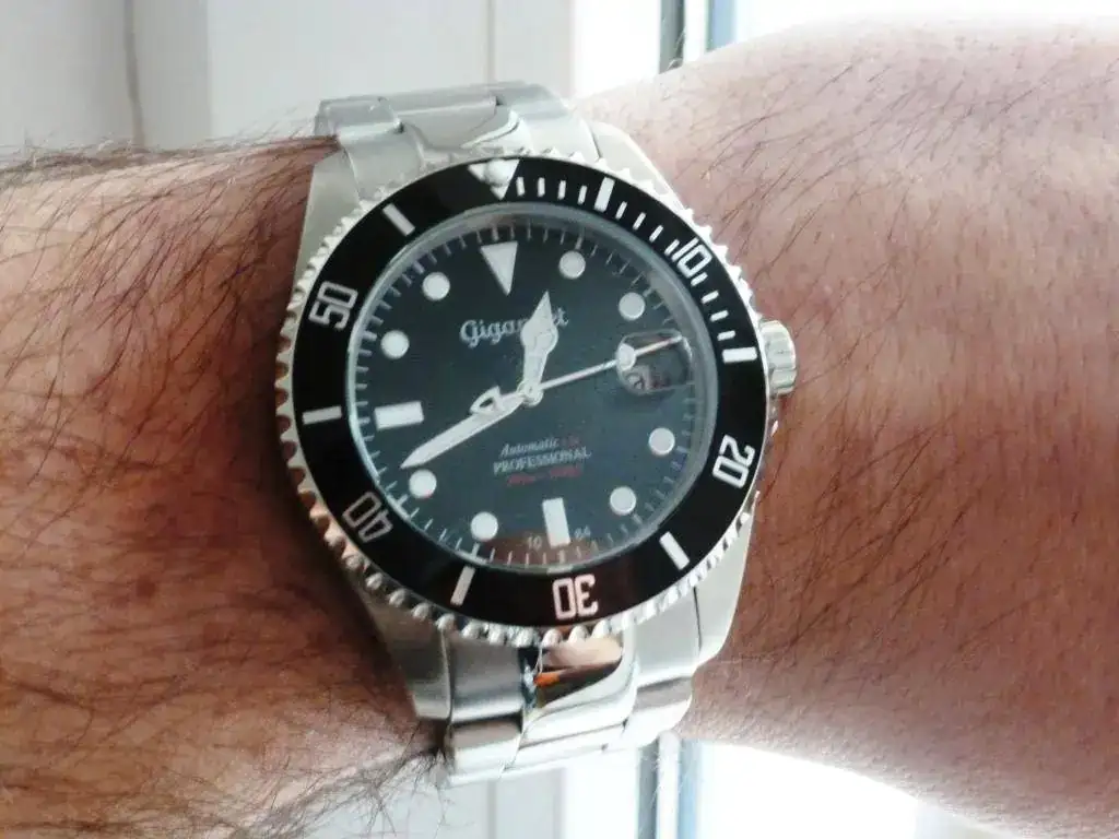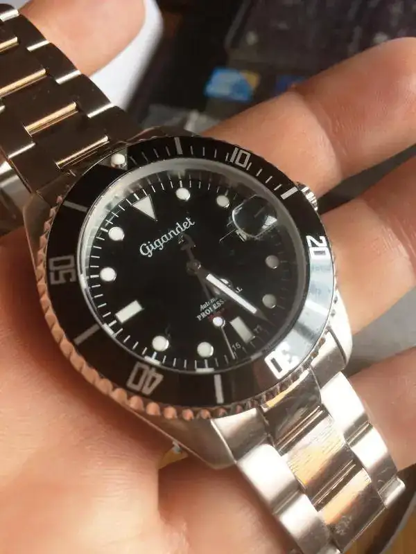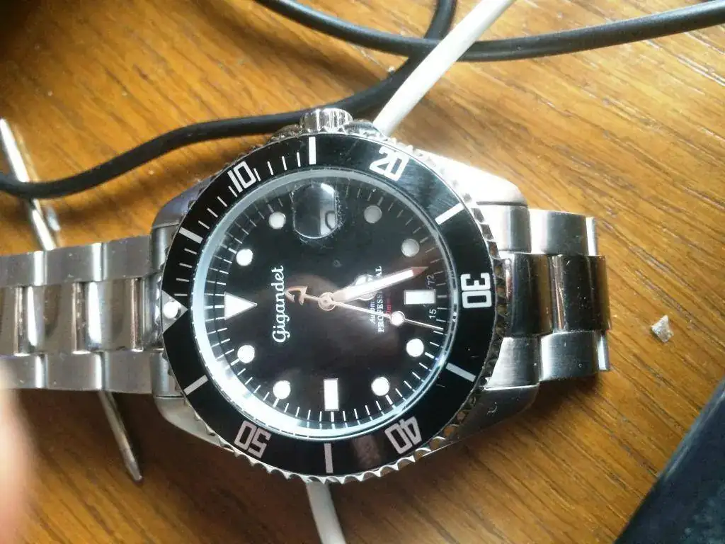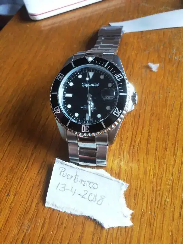Fruto de un cambio me llego este fantastico diver Gigandet Sea Ground G2 , impoluto, de reestreno total, no le veo marca alguna, es automatico, 300 metros, maquina Citizen-Miyota 8215, tiene corona roscada, un tamaño de 43 mm perfecto para mi muñeca, cristal mineral.... increible calidad y fantastico precio.