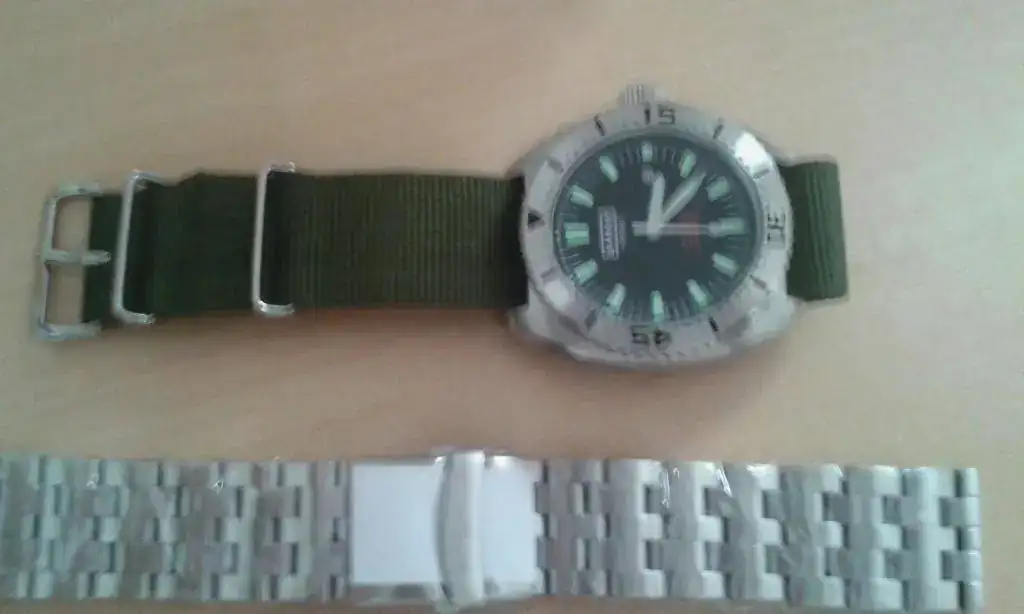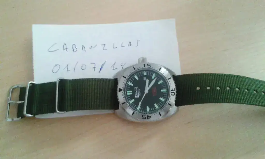 El estado es del 99% sobre 100.Tanto es así que el armis está todavía con sus plásticos puestos..por que le calzé la nato verde con la que aparece en las fotos,que le dan un aire como muy Benarus era Vietnam. Ahh,y por supuesto,te regalo también la nato!!!