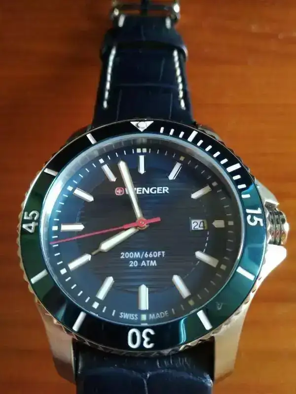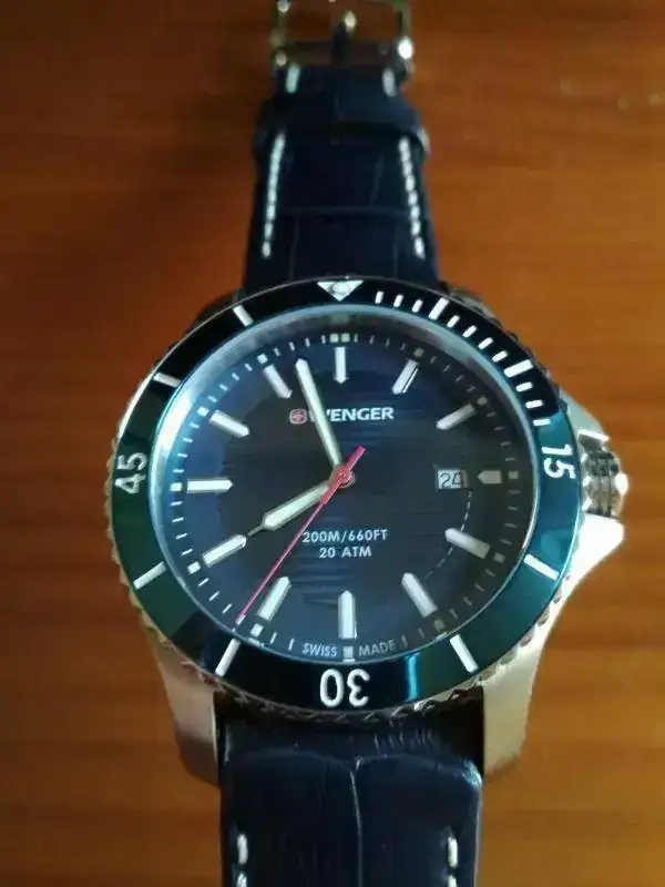Hola: Vendo, o cambio por reloj de estética Bauhaus que me guste, este Diver de un bonito azul y cuarzo suizo, en muy buen estado, muy pocas puestas. Mando con su correa y una de piel azul Hirsch que se ve en las fotos, usada, adaptada a este reloj. Completo. Para contacto, por privado. Saludos.