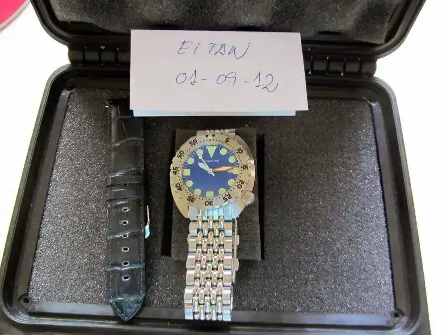 Unos entran y otros tienen que salir, esta vez le toca a este diver tan especial muy poco visto por estos lares. Estado de absoluto reestreno, algún inevitable pelillo en el cierre. Soberbia presentación en caja tipo pelikán y correa de piel de regalo.