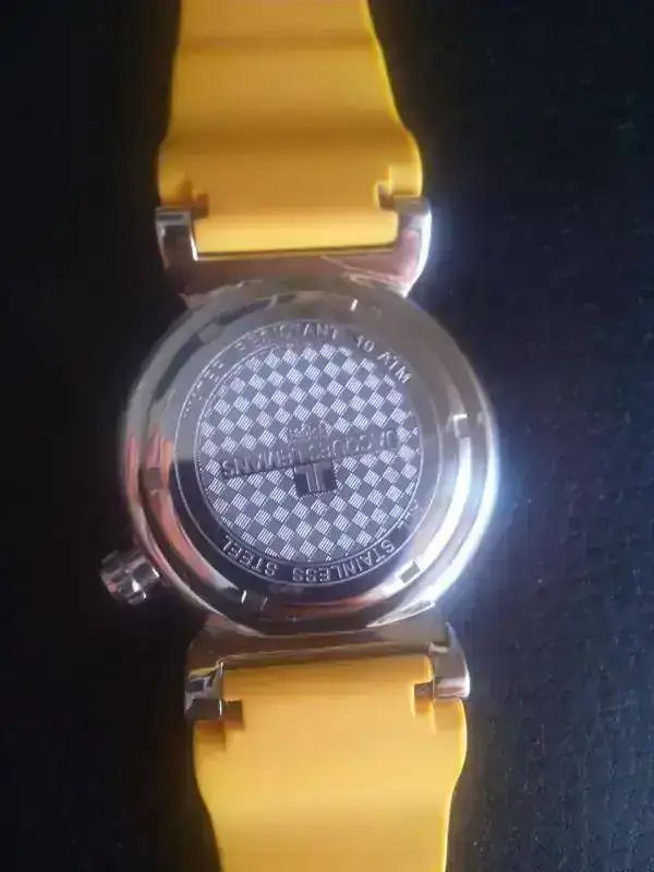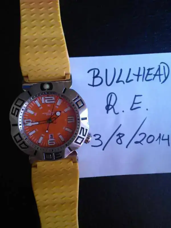 buenas a todos, saco procedente de un cambio, un contundente diver JACQUES LEMANS de 45mm sin corona,lumen genial, solo reloj ,estado muy bueno solo destacar que el caucho algo descolorido pero uniforme, ( CON UN NATO NARANJA ...tiene que quedar genial