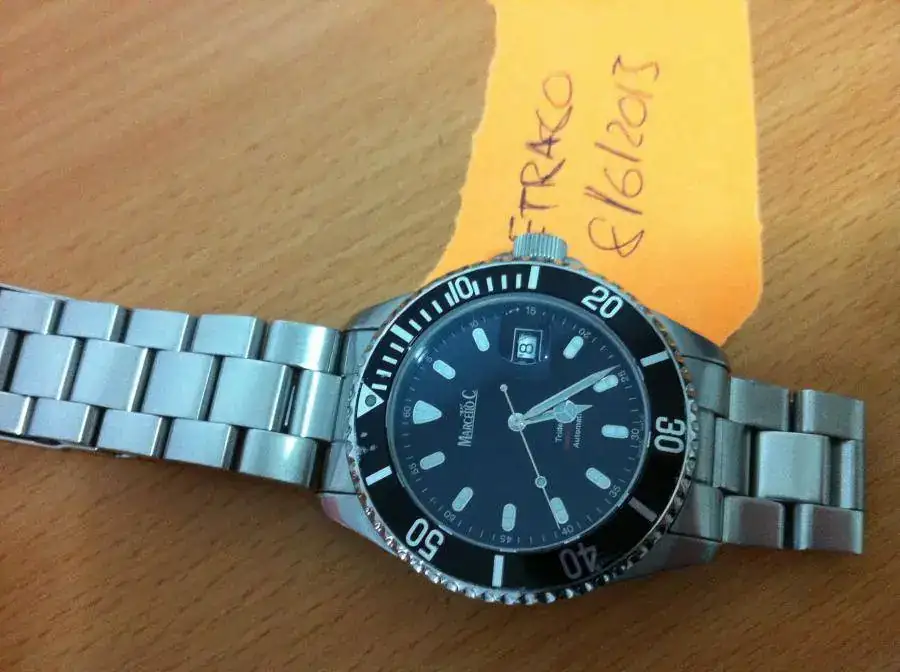 Hola a todos. Cambio esté diver buscadisimo en el foro. Se trata de un Marcelo C con las siguientes características: caja de 44mm muy cómoda,cristal de zafiro con lupa a las 3,estanco a 1000m, eta 2824.... El reloj es usado y se entrega sin caja ni papeles. Tiene el insert con marcas a las 11 y a las 8 y un levéis uno roce en la lupa que no se ve mucho pero esta. La descripción es precisa por lo que no admitiré devoluciones... De marcha va como un tiro. Lo cambio por otros divers no seiko excepto el sumo , divers alternativos, tipo sub o un ttouch. Gracias al foro por el espacio.