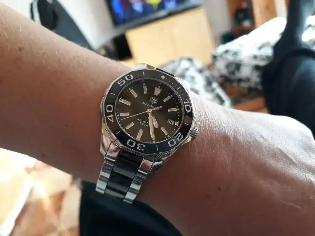 Y después, recientemente paseando por Barcelona vimos el Tag Heuer Aquaracer Calibre 9 en 32 mm y le llamó mucho la atención. Éste sí que cumpliría con todos los requisitos y a mi personalmente es de los que más me gustan.