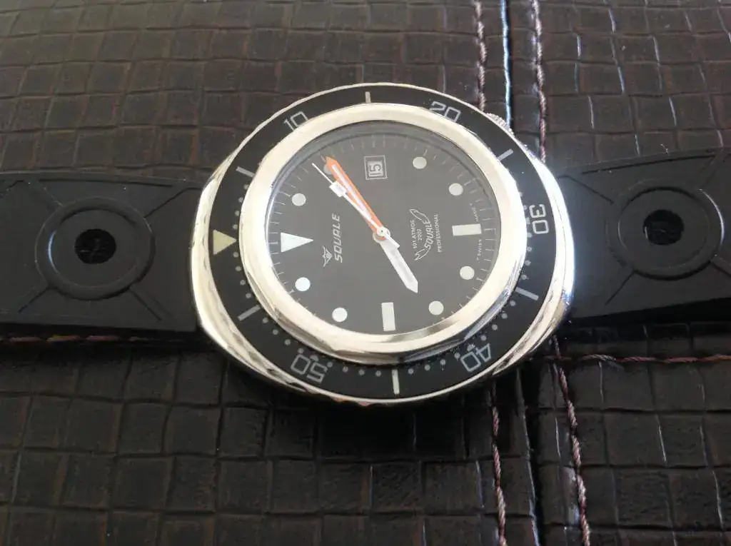 squale 101 vintage, todo un icono de la apnea , priemer reloj hecho para soportar 1000mt el amarillo mio es ese