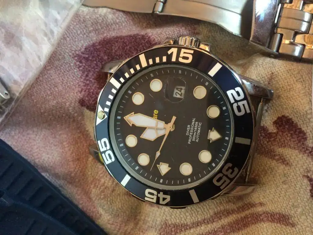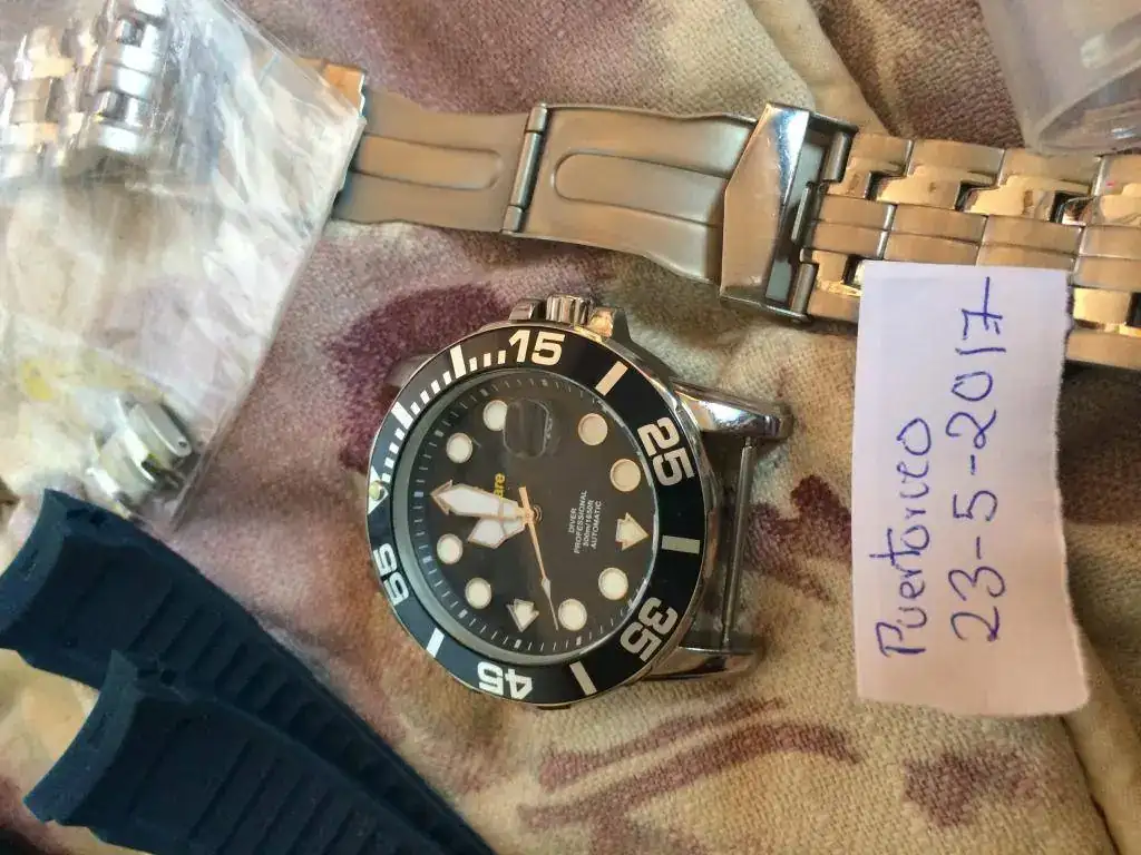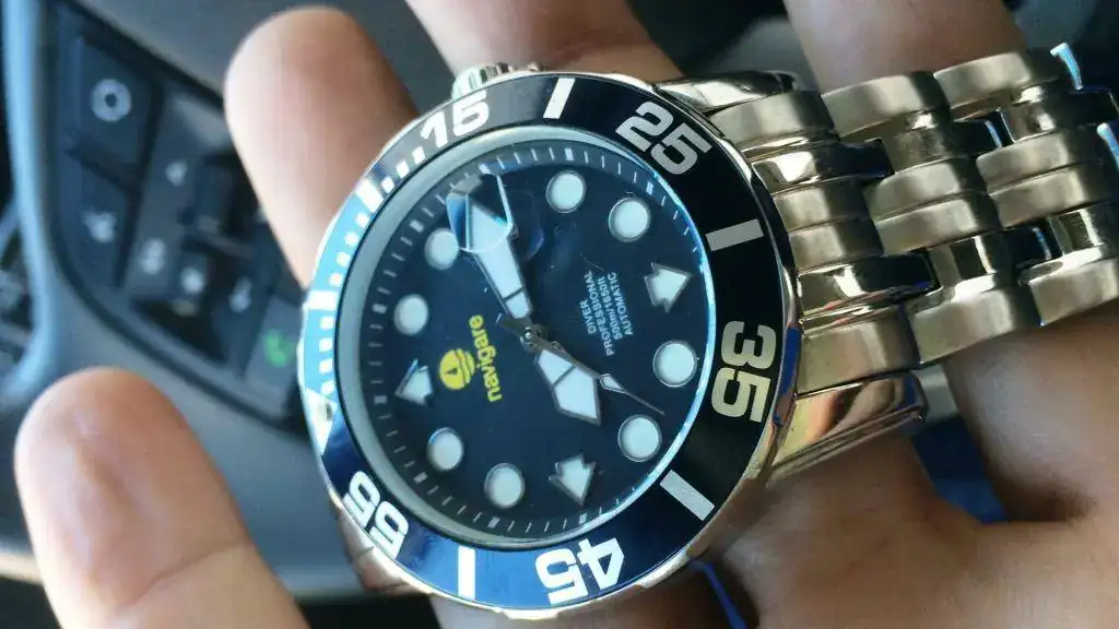 Pongo en el foro para que otro compi lo disfrute, este reloj NAVIGARE, automatico, maquina miyota (creo), 500 metros con armis y caucho, dotación completa, mas papeles pero sin tarjeta de garantia. Lo tengo desde hace tres dias, fruto de un cambio, pero no me hago con el