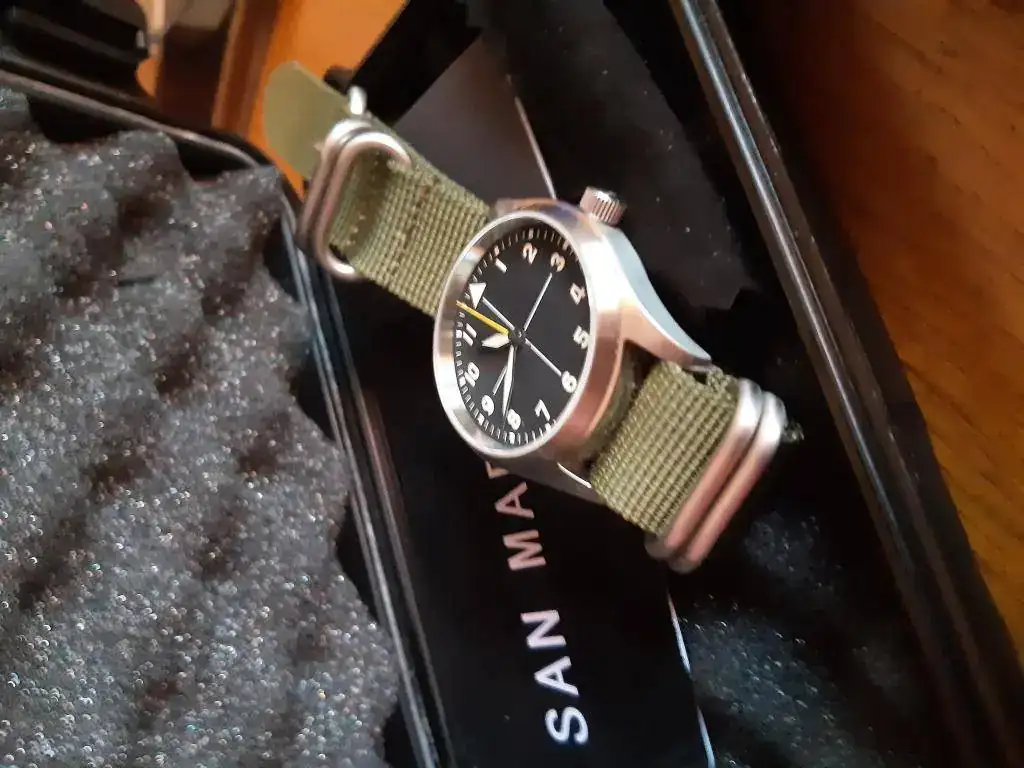 Es un reloj automatico, mecanismo seiko, cristal zafiro, con nato, caja y documentación y destacar que es una preciosidad, más aun al precio que le voy a poner, el más barato del foro 120 euros envio a parte (correo postal 5 euros).
