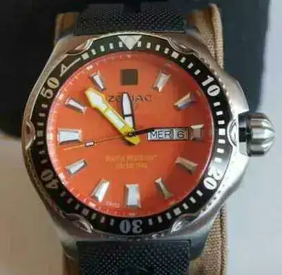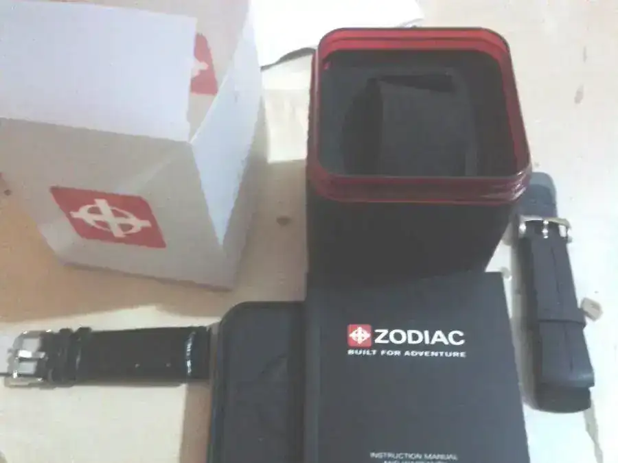 El reloj se te envía super-equipado.Aparte de la caja y papeles originales(garantía ya caducada),te incluyo en el precio una milanesa gorda,apta para muñecas de hasta 19 mm,de gañote y de estreno.La milanesa le queda de coña...le dá un aire a los viejos zodiac vintage genial.