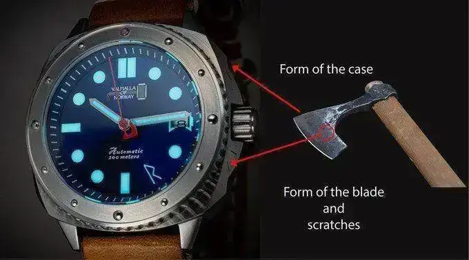 El nombre "ØKS" significa hacha en noruego, y la forma de una hacha típica nórdica está presente en muchos aspectos del diseño de este nuevo reloj.