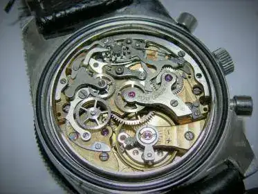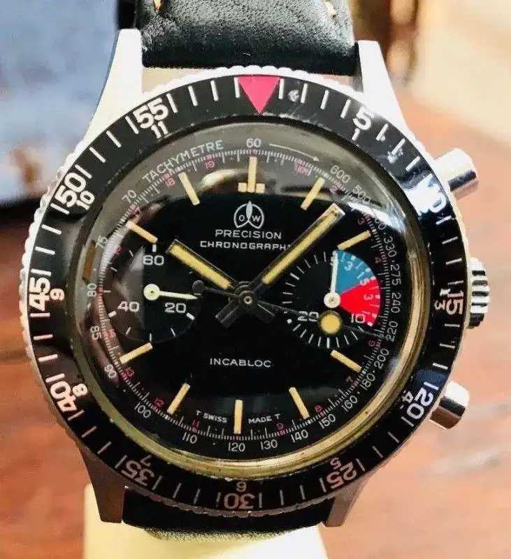 Otra joyita, aunque este un poco más sufrida por los años : Heuer Leonidas con espectacular calibre Valjoux 23. El subdial de minutos con la marcación roja de cinco minutos para marcar las salidas de regatas.