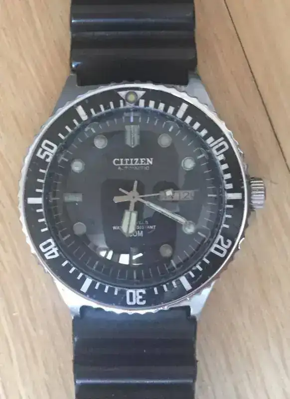 Se fabricaron muy poquitas unidades del diver, por eso hoy están muy cotizados, igual que su hermano menor el SuperAutoDarer para150mwater. Yo llevo años detrás de alguno de estos dos modelos y de momento no he sido capaz de hacerme con uno. Estas fotos son del ejemplar que subió hace tiempo un compañero del Foro, que ya sabe donde tiene a alguien interesado si sigue en su poder y surge…