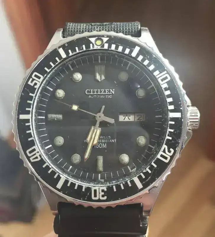Y terminamos este grupo con el Citizen 150m Ref. 51-2273 de1980. También contemporaneo al Seiko Tortuga. Calibre Miyota 8200A con dial y fecha. Este también fue reloj de dotación, en esta ocasión de la Agrupación de Buzos tácticos de las FFAA Argentinas, y participaron en la Guerra de las Malvinas de 1982.