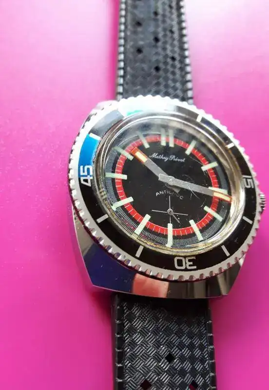 Saco para venta este diver setentero muy bien conservado. Se le hizo un repasito hace un año más o menos y va bien. Sus puntos fuertes son el estado de conservación teniendo en cuenta los años que tiene, el precioso bisel, el tamaño (mide 40 contando la corona) y que lleva una tropic original que ya sólo eso vale casi la mitad de lo que pido. He sacado en las fotos las pequeñas marquitas que tiene que salen ampliadas para que se vean bien. Con un pulido salen seguro porque no son profundas, pero ahí están...recordad que no es nuevo. Si te gustan los divers vintage, aprovecha la ocasión. Contesto por mensaje privado. Priorizo entrega en mano en Madrid.