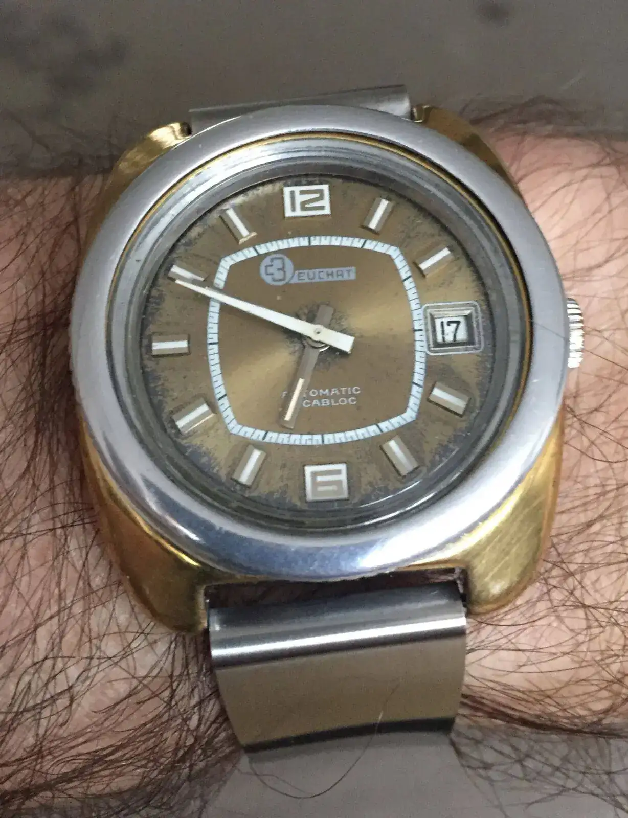 Otra pieza rara que ya he mostrado alguna vez, un BEUCHAT de los años 60´s, con el logo antiguo de la “CB”, donde la caja presenta el frontal “Gold Filled” con un mejor mantenimiento en el tiempo que el dial o el bisel giratorio “gosht” de aluminio.
