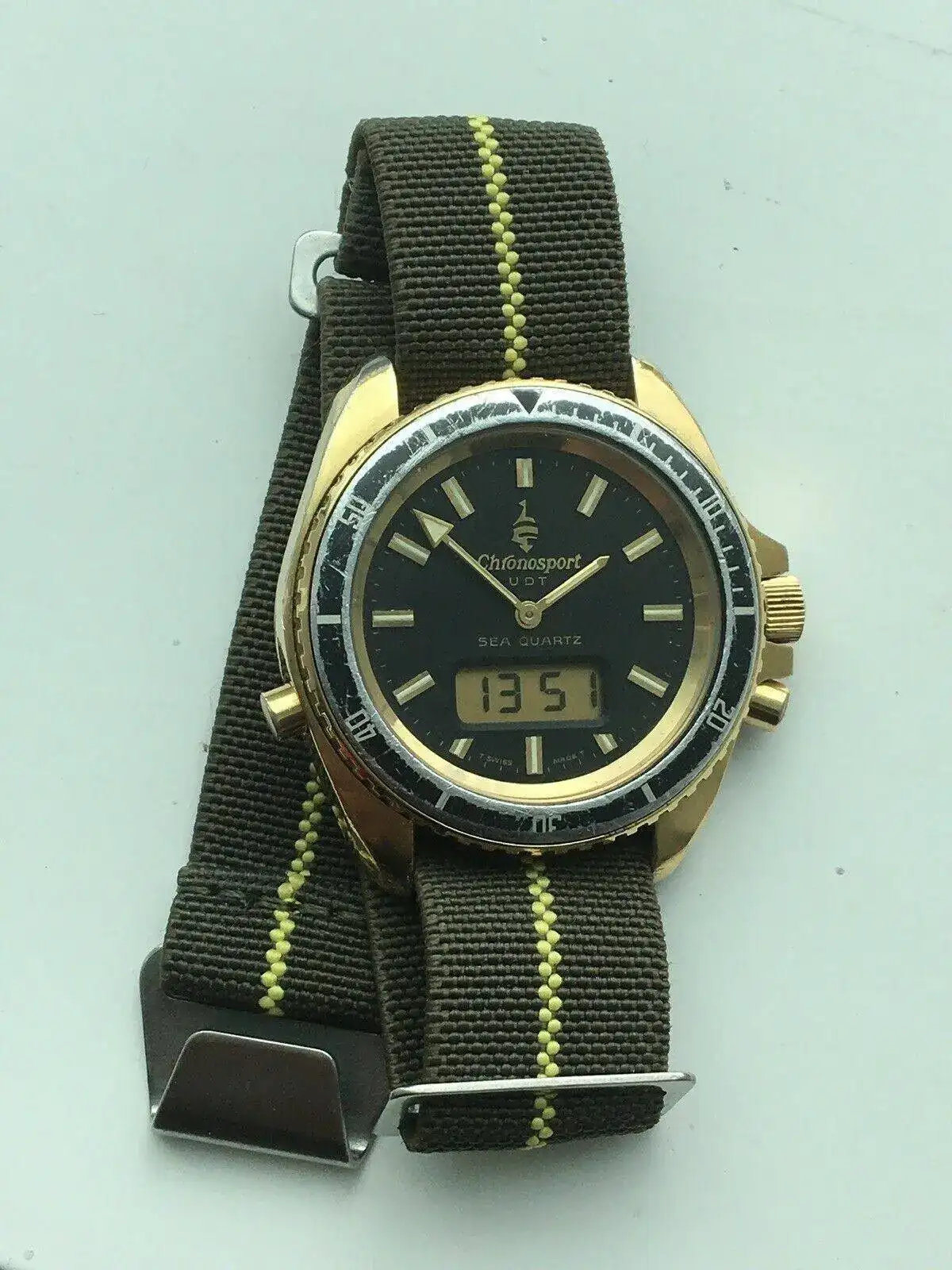 Incluso se lanzaron versiones bañadas en oro de los Ana-Digi en caja Monnin como este ejemplo de Chronosport UDT de 1980 :