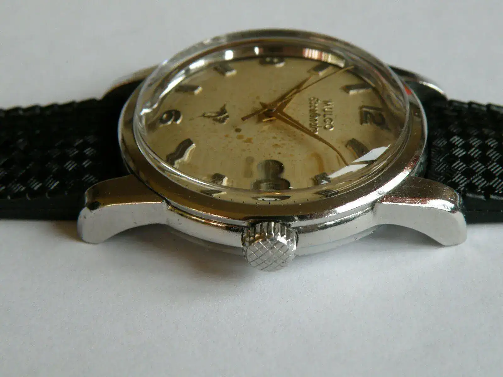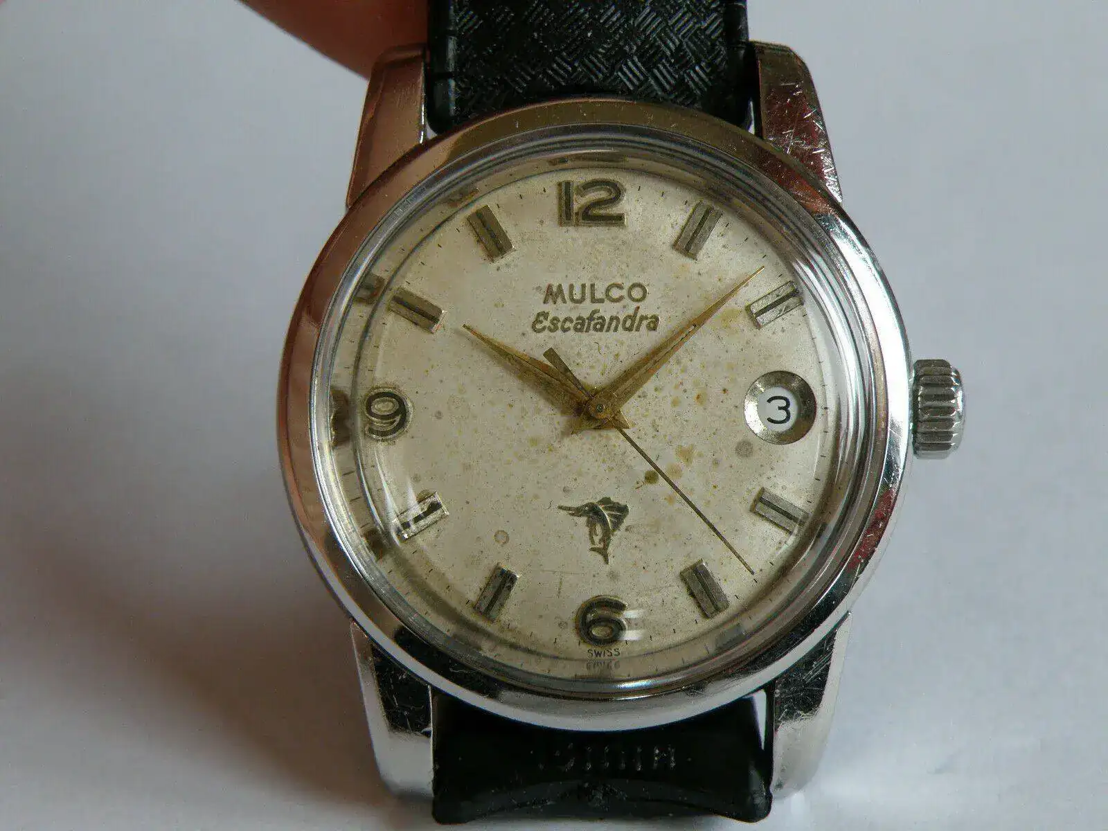 Hace poco adquirí un ejemplar de Mulco Escafandra de 1962. Este ejemplar ha sido castigado por el tiempo y aunque su estado de marcha es correcto, en algún momento un artista retocó el dial y el lumen de las agujas y efectuó un pulido de la caja ( bien se podía haber metido las manos donde yo le dijera...).