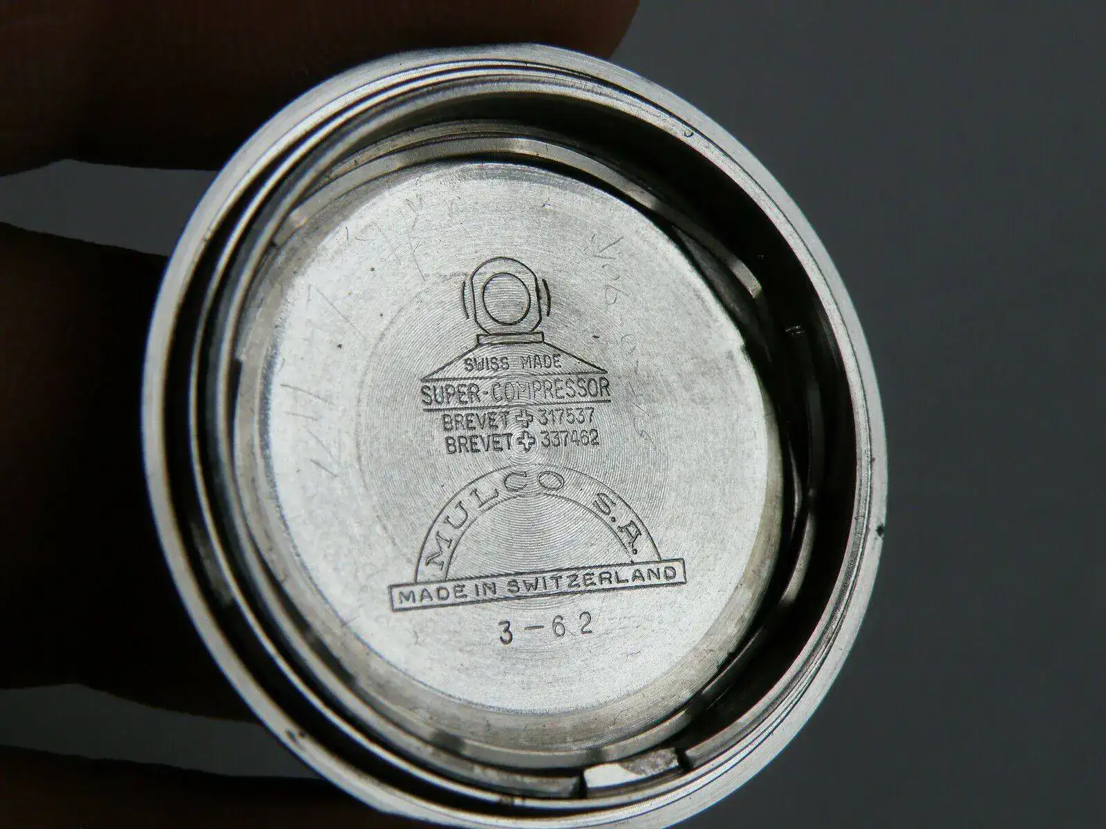 Ahora al poder contemplar juntos mi Zenith S58 MkIVa de 1964, y este MULCO Escafandra de 1962 veo que su semejanza también es patente en su trasera , con su diseño dodecagonál de tapa roscada; y aunque esta versión del Zenith S58 viene con agujas horaria y minutero muy diferentes, la segundera es simplemente la misma :