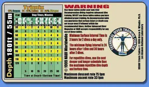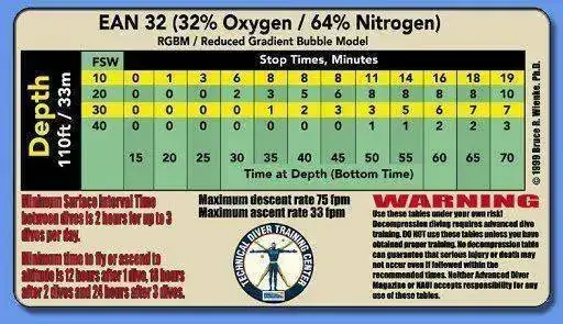 Esos cálculos varían también conforme el compuesto que se este respirando, bien sea aire comprimido, mezclas Nitrox o mezcla con gases inertes como el Helio, p. ej.: Trimix y Heliox (las mezclas con Helio como gas inerte evita los efectos tóxicos del Nitrógeno a partir de los 40 metros de profundidad).