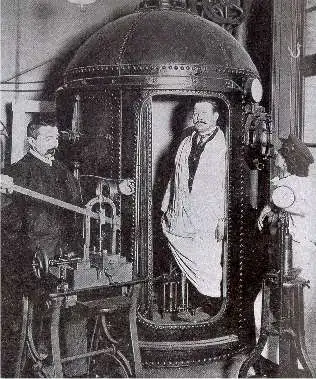 Aquí podemos ver a Paul Bert probando un prototipo de Cámara Hiperbárica.