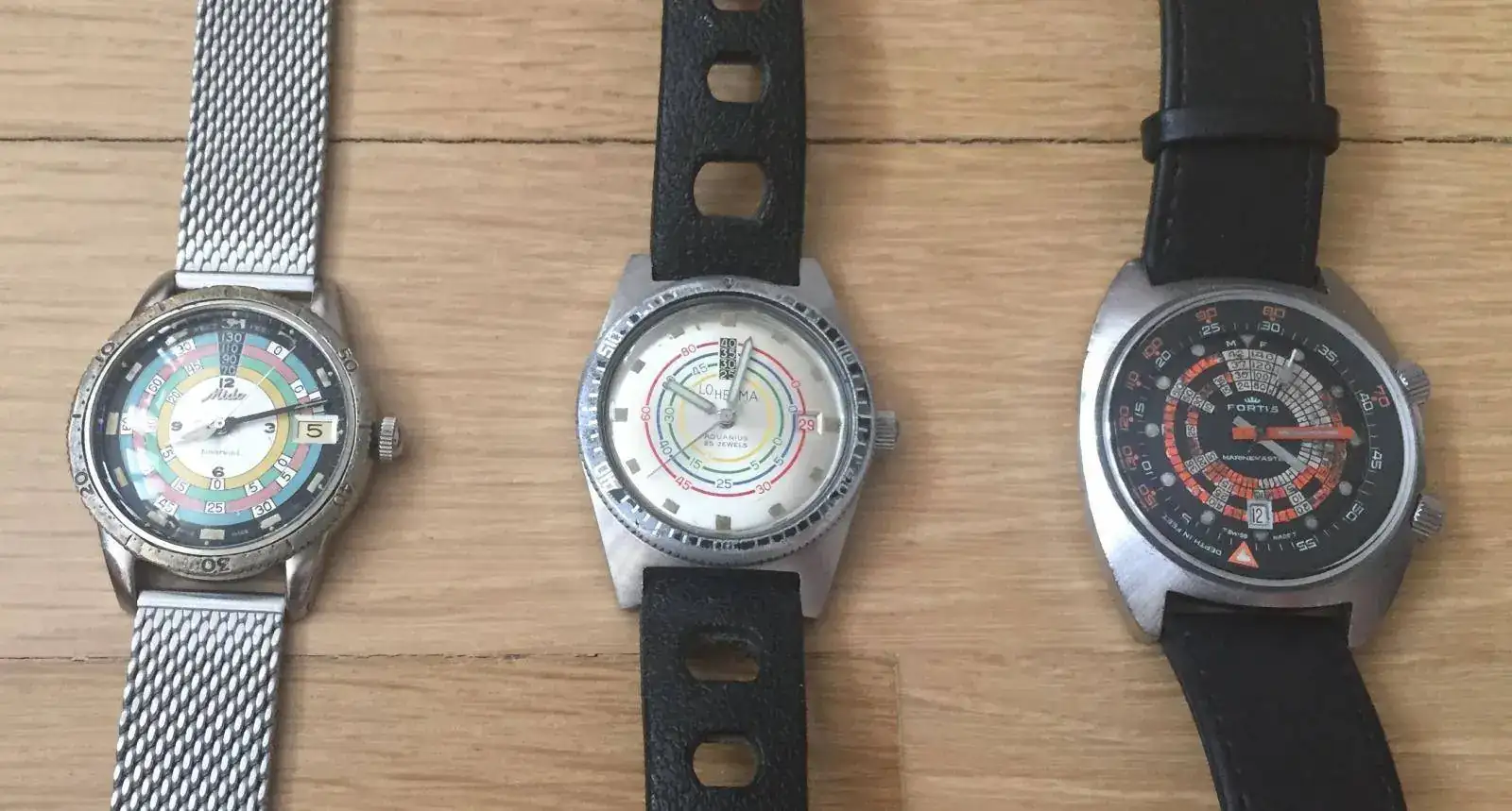 Por cierto, una curiosidad, Fortis también lanzó unidades de relojes diver de la serie 6237 sólo que con diales limpios, sin la típica tabla de decompresión; esos no han sido objeto de copias ni re-ediciones; dado que lo novedoso de estos Fortis fue precisamente el diseño de fácil lectura de su tabla de descompresión.