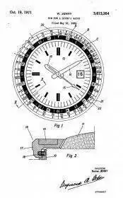 Pero realmente el Bisel con Tiempos de descompresión por excelencia es el que desarrollo en 1969 JENNY para sus JENNY Caribbean, y que luego compartieron con otras firmas. Presento su patente en 1970 y la obtuvo en 1971; y basó su bisel en los diales que antes comentábamos que comparten los Fortis y Vulcaín de finales de los 60. Igualmente muestro esquema de la patente y forma de operar con el bisel.