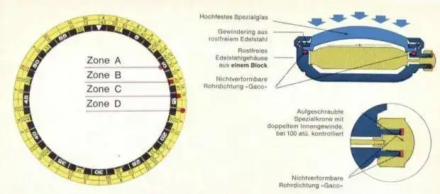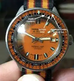 Estos relojes incluían la tabla de Descompresión de los US Divers. Tenían profundímetro, media tiempos de buceo y superficie, calculando y mostrando el tiempo de descompresión requerido en la siguiente inmersión. Con memoria para 30 inmersiones. Podía determinar si se podía volar en avión, según las inmersiones realizadas, etc..
