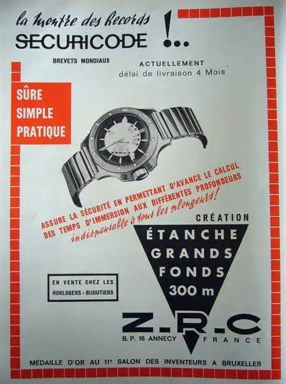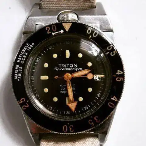 Quizás el modelo que primero mostró en su bisel esas referencias sea el mítico Triton Spirotechnique de 1960, con versiónes de bisel graduado en metros “MARINE NATIONALE TABLES G.E.R.S. 1960”. También tuvo versión para el mercado americano : “ACCORDING TO US NAVY TABLE”.