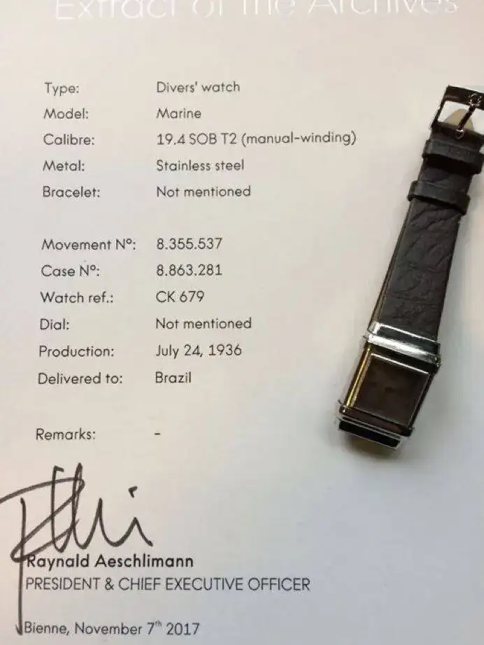 Este ejemplar de mi colección se comercializó en Brasil en 1936 como especifica el Archivo de Omega, y todavía hoy luce hasta el plexi interior original firmado.