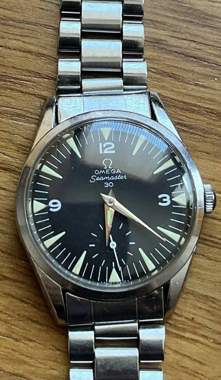 Omega Seamaster 30 (Ref. 2937-4) de 1962, con su calibre manual 267. El 30 no hace referencia a la profundidad soportada, sino a los 30 mm que mide el robusto y preciso calibre manual 267 de Omega. La caja de acero mide 35,5 mm y se acompaña de su armis original. Su aspecto es muy similar a los Ranchero, pero este modelo es más económico, por lo que es una buena pieza de entrada al coleccionista de Omega vintage.