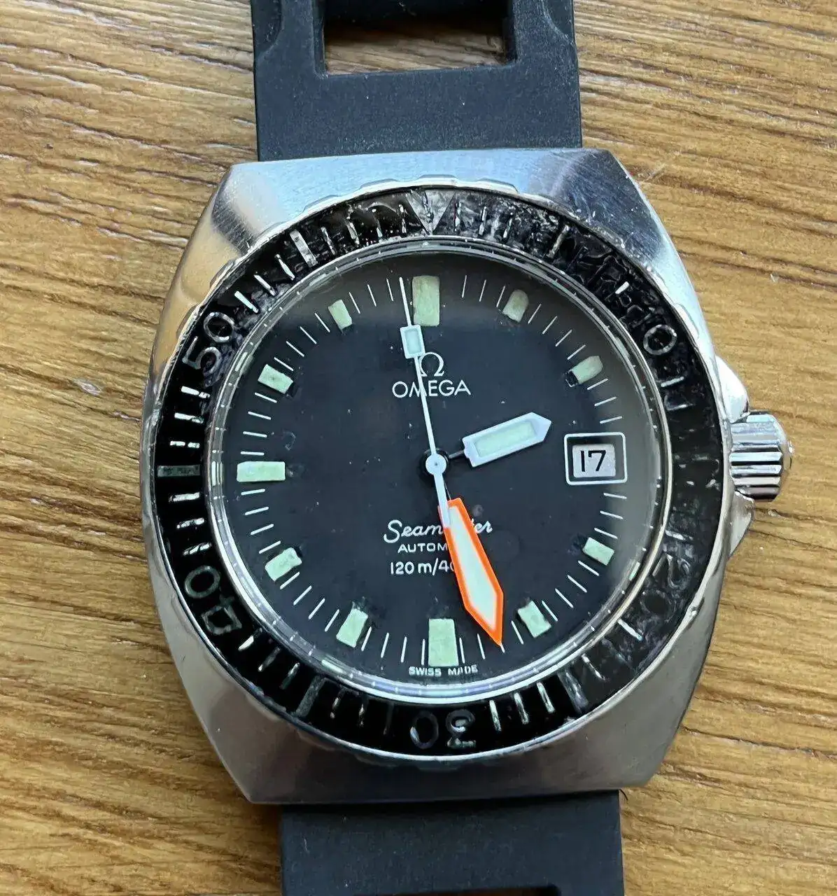 Omega Seamaster 120 "Baby PloProf", Ref. ST 166.025, con unos menos pretenciosos 120m de estanquieidad y caja Tonneau de 43mm.