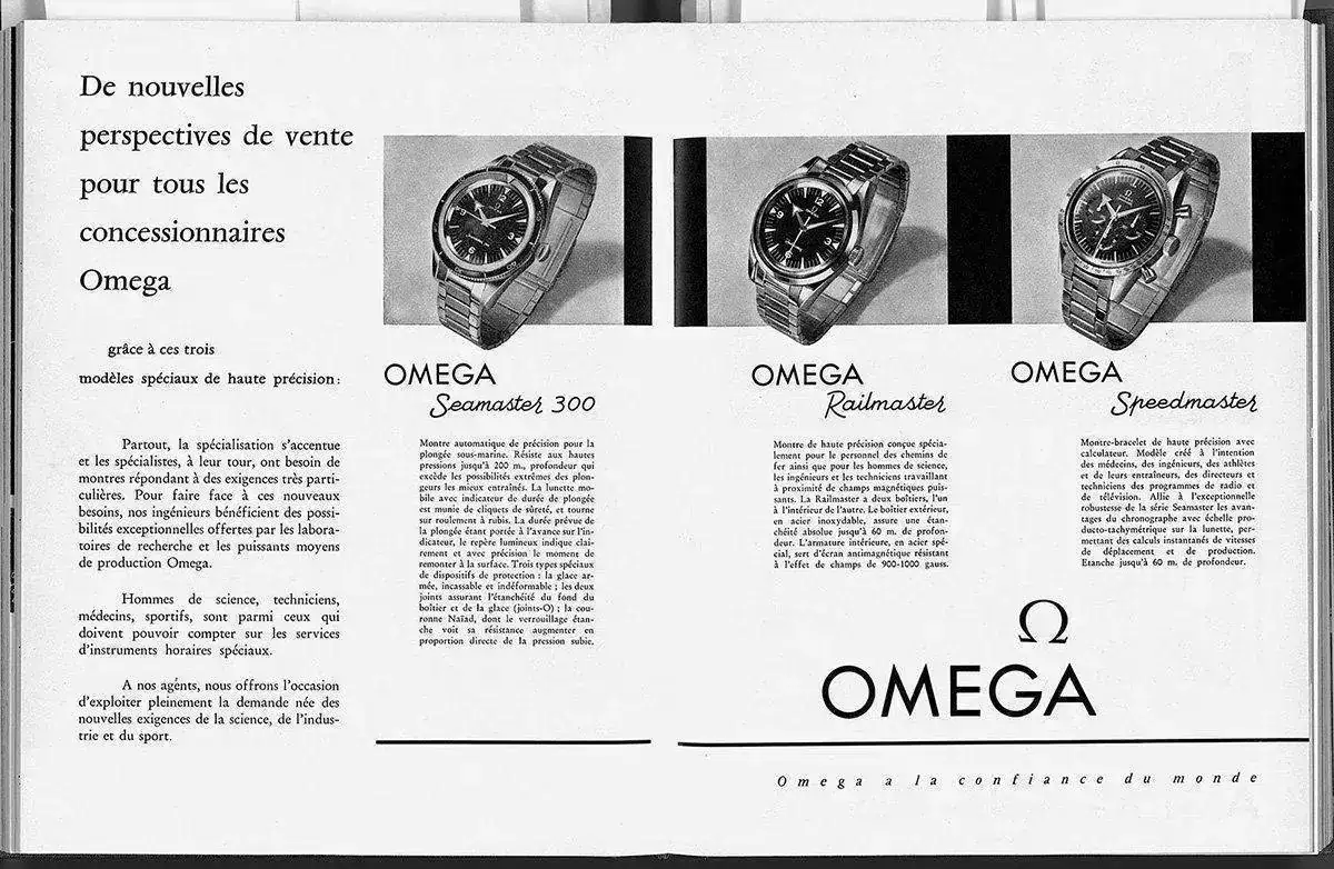 1957, el año más importante en la historia de Omega, se lanzan tres relojes-herramienta : Seamaster 300 (CK 2913) Railmaster (CK2914) y Speedmaster (CK2915).