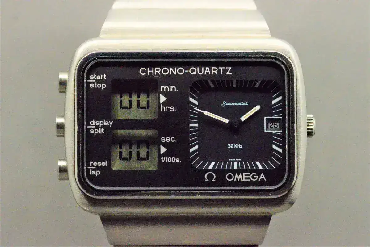1976, Omega SM Chrono-Quartz “Albatros”, calibre ana-digi 1611 con LCD. Desarrollado para los JJOO de Montreal´76. 120m wr