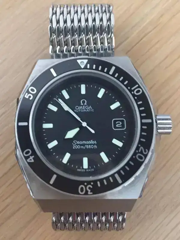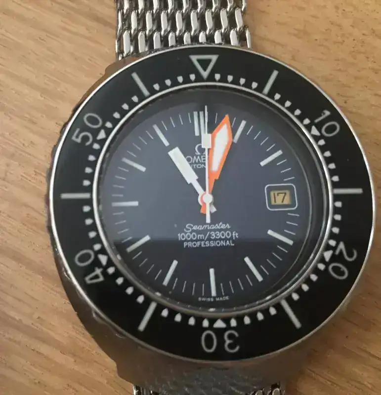 Omega SM 1000 de 1976, calibre 1012 y malla original 1047/237, este presenta piezas de servicio al ser remitido en su día a la casa para revisión, a cambio posee certificación de estanqueidad de 100 Atmos.