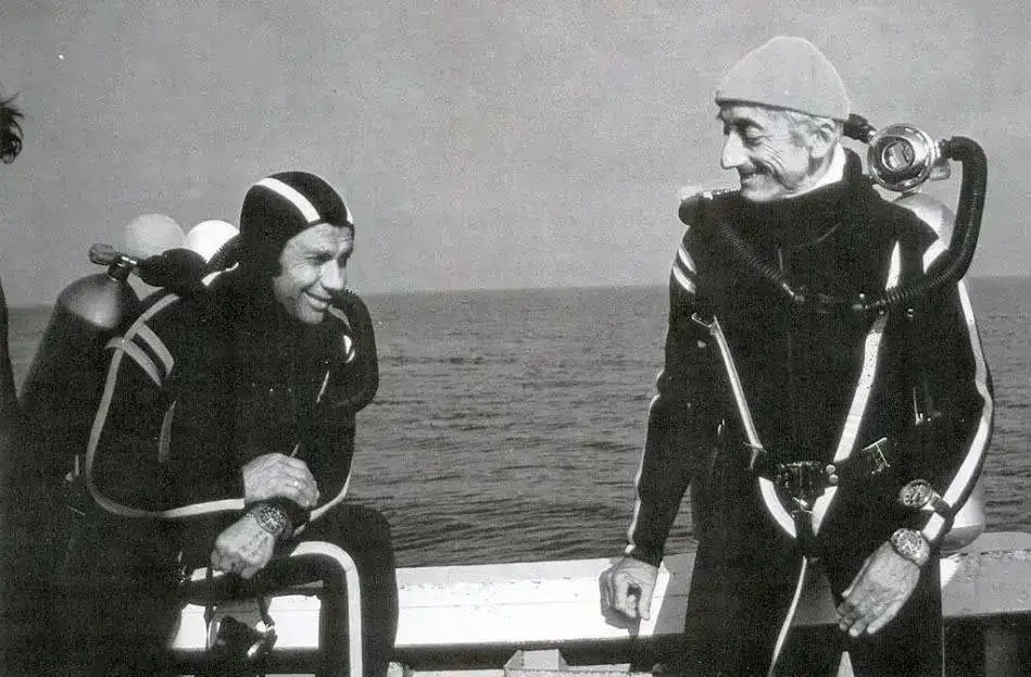 La foto que viene a continuación tiene su importancia histórica, es la primera fotografía de un buzo portando un reloj de pulsera, Yves Le Prieur con un Omega