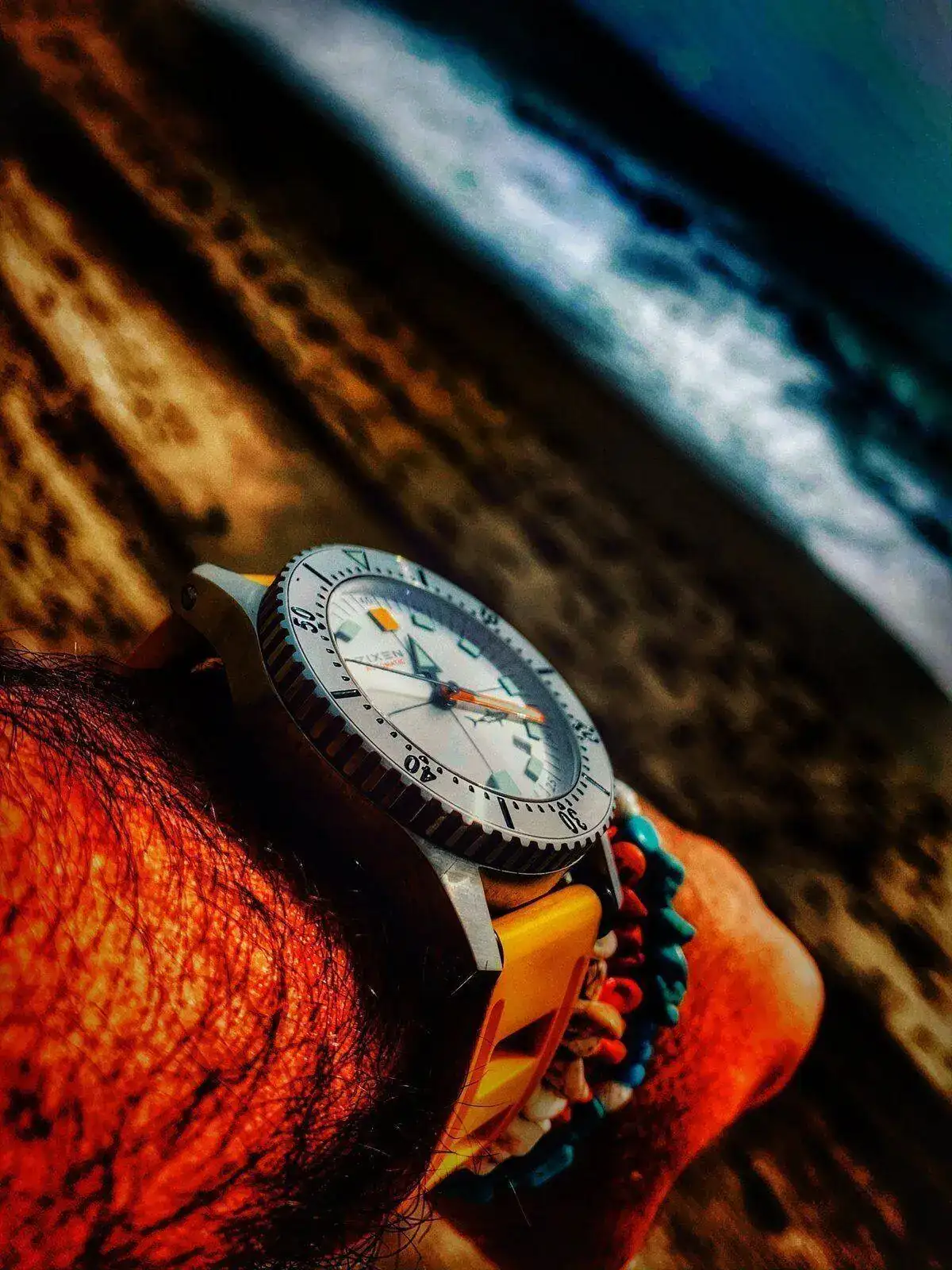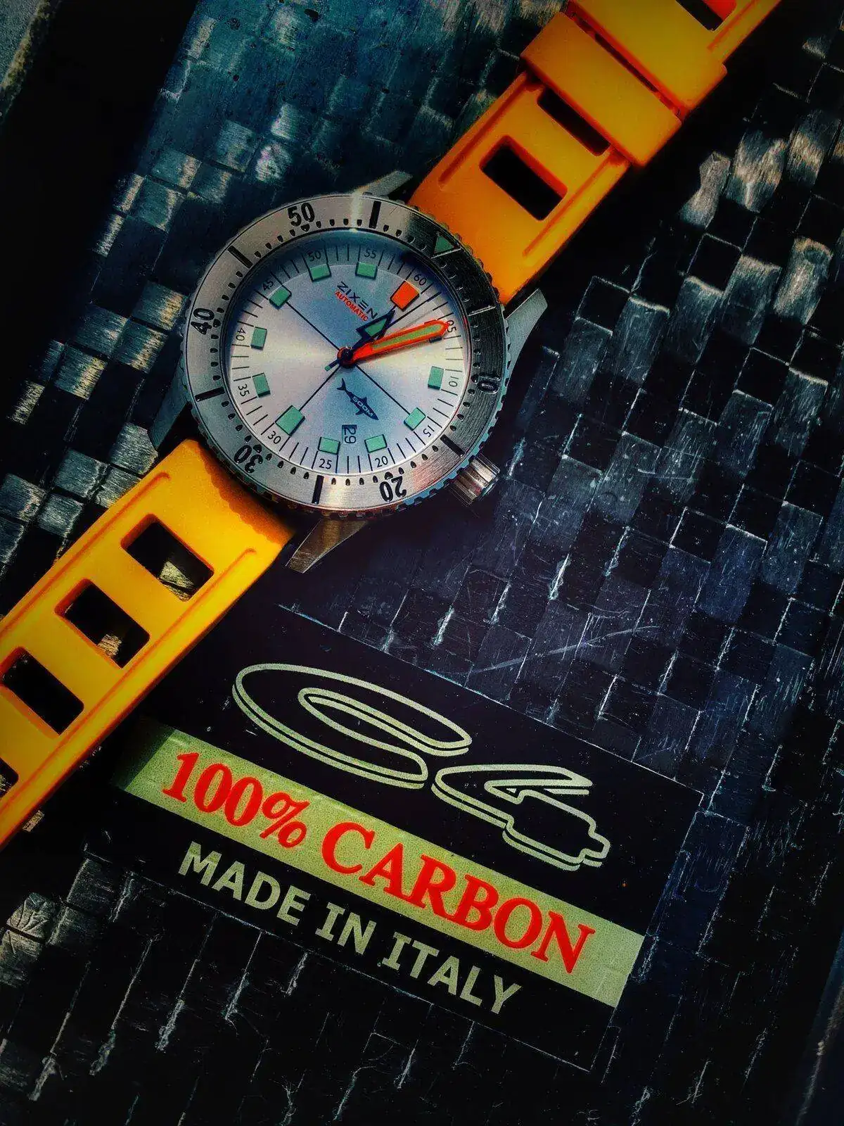 Lunes Zixen vintage edition un 500mt de caja potente y contenida a la vez.con un caucho amarillo, el dial plateado da muy buen efecto